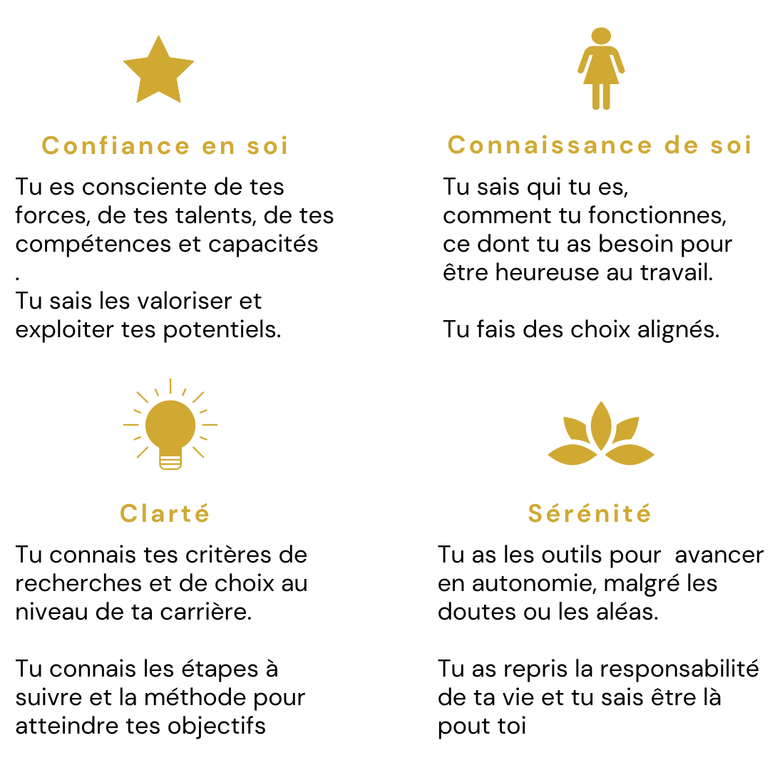 👉 passer d'une personne hésitanteà une personne confiante et fière de son projet professionnel